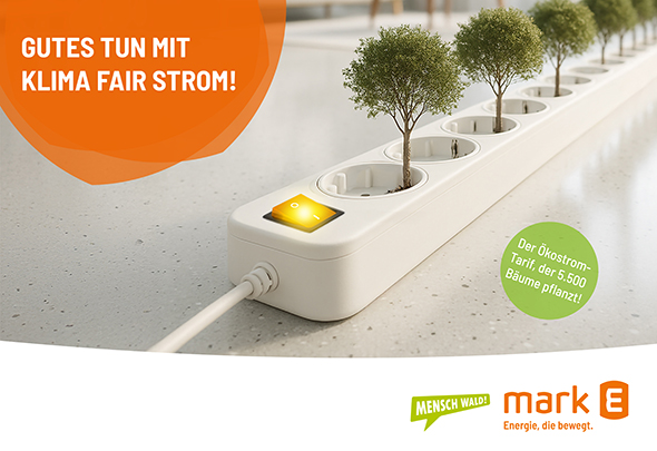 Beim vom TÜV Rheinland zertifizierten Klima Fair Strom-Tarif garantiert Mark-E, dass der Strom zu 100 Prozent aus erneuerbaren Energiequellen wie Windkraft, Wasserkraft, Photovoltaik oder Biogas stammt – zu einem großen Teil sogar direkt aus der Region. Die Kundinnen und Kunden erhalten zudem eine Strompreisgarantie über die Vertragslaufzeit (ausgenommen staatliche Preisbestandteile). Weiterer Pluspunkt: Klima Fair Strom-Kunden können im Rahmen des Mark-E Energiespar-Programms exklusiv Prämien für energiesparende Anschaffungen wie effiziente Wasch- und Spülmaschinen, Wallboxen, E-Bikes, Balkonkraftwerke oder Wärmepumpen erhalten.